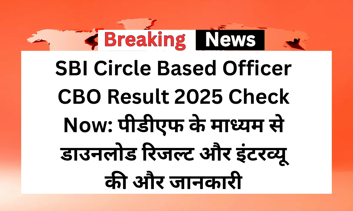 SBI Circle Based Officer CBO Result 2025 Overviewस्टेट बैंक ऑफ इंडिया (SBI) ने Circle Based Officer (CBO) पदों के लिए परीक्षा का आयोजन 28 जुलाई 2025 को किया था। अब बैंक ने 13 अक्टूबर 2025 को ऑफिशियल तौर पर SBI CBO Result 2025 जारी कर दिया है। अगर आपने यह परीक्षा दी थी, तो अब आप नीचे दिए गए डायरेक्ट लिंक से अपना रिजल्ट पीडीएफ फॉर्मेट में डाउनलोड कर सकते हैं।
