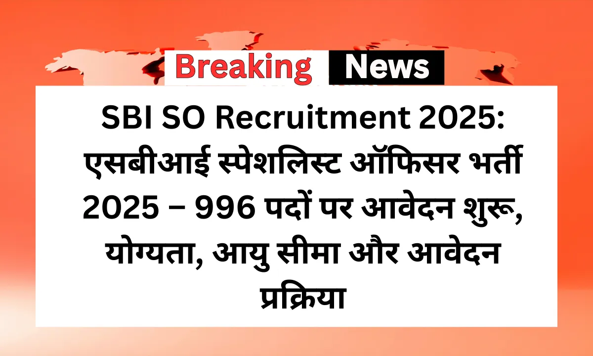 SBI SO Recruitment: भारतीय स्टेट बैंक (SBI) ने साल 2025 के लिए स्पेशलिस्ट कैडर ऑफिसर (SCO) पदों पर एक बड़ी भर्ती अधिसूचना जारी कर दी है। इस भर्ती अभियान के तहत कुल 996 पदों पर योग्य उम्मीदवारों से ऑनलाइन आवेदन आमंत्रित किए जा रहे हैं। इच्छुक और पात्र उम्मीदवार निर्धारित अंतिम तिथि से पहले ऑनलाइन आवेदन कर सकते हैं।
